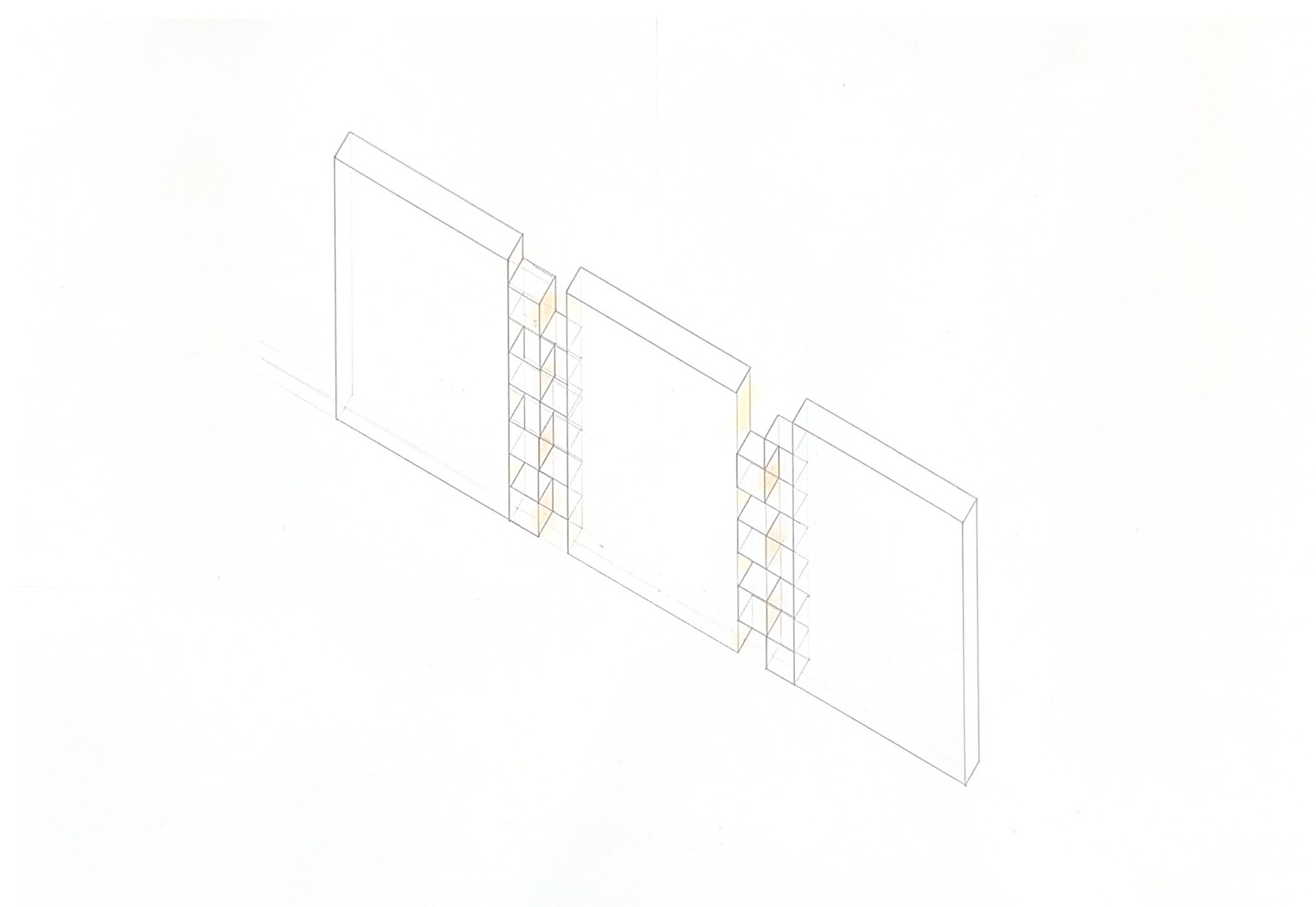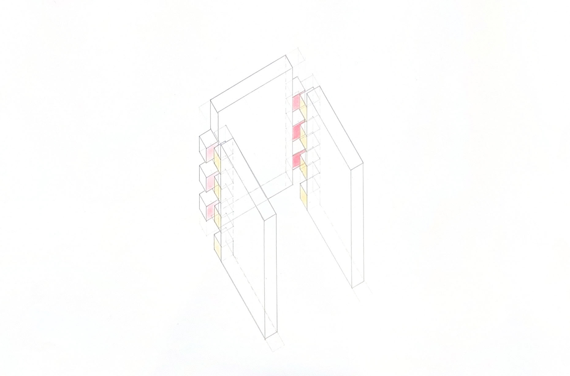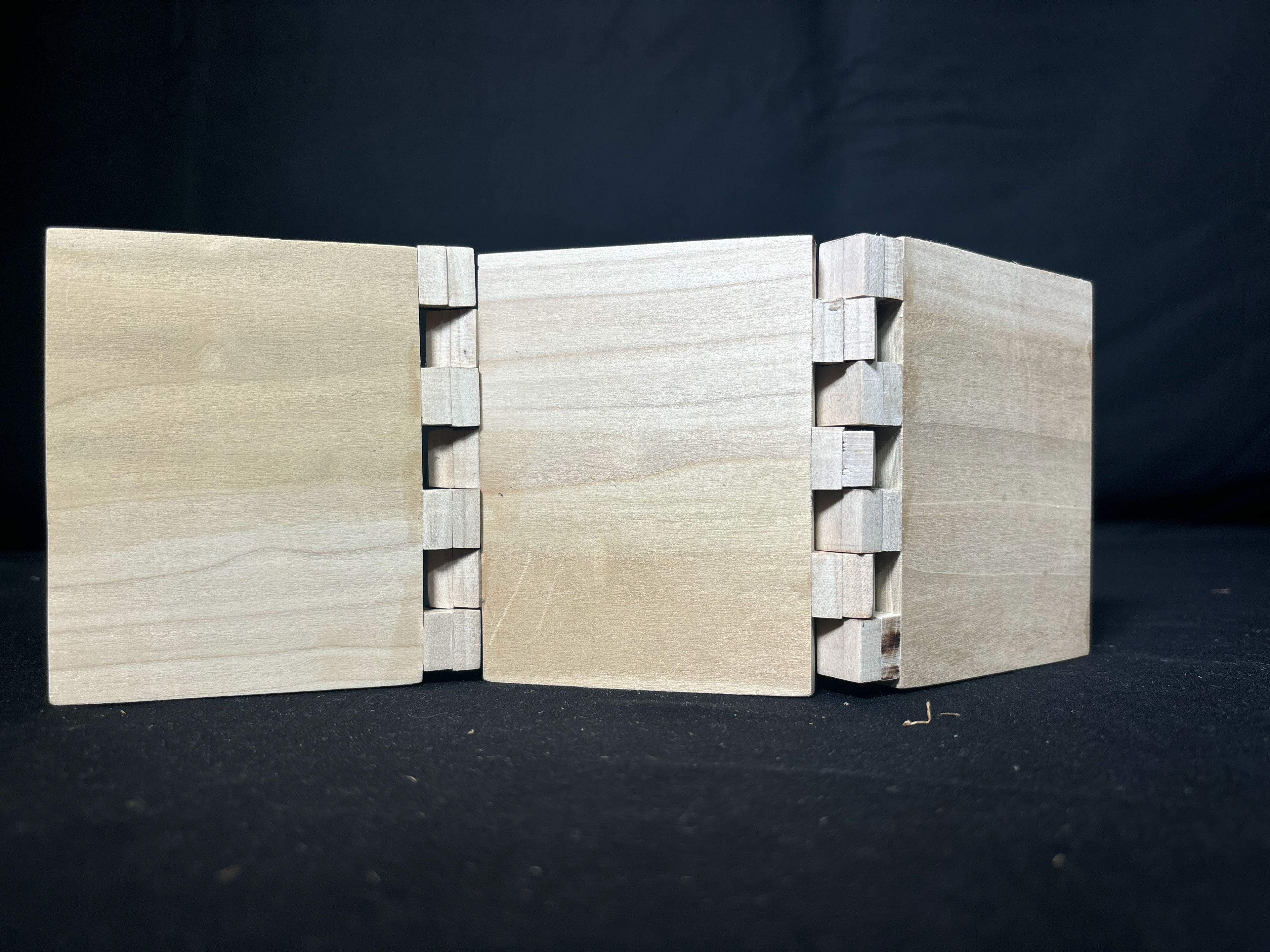 Inspired by the joints of our hands, I created a wood joint (my first foray into woodworking), then drew paraline drawings, using color as a way to emphasize the joints.